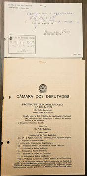 Exemplar do projeto de Lei de Orgânica da Magistratura Nacional (Loman) enviado à Amagis, em 1978, por Tancredo Neves, então líder do MDB na Câmara dos Deputados.